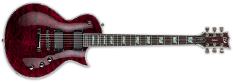 Guitars in the LTD EC-1000 Series are designed to offer the tone, feel, looks, and quality that working professional musicians need in an instrument, along with the pricing that typical musicians can still afford. The EC-1000QM offers the sumptuous look of a quilted maple top along with the classy LTD Deluxe features that set it apart from other guitars in its range, such as abalone inlays and purfling, full body/neck/headstock binding, and premier components like LTD locking tuners, a Tonepros locking TOM bridge and tailpiece, and the aggressive punch of active EMG 81/60 pickups. It also offers set-thru construction with a mahogany body, 3 pc. mahogany neck, and 24-fret pau ferro fingerboard. Available in See Thru Black Cherry finish.