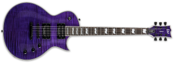 Гитара LTD EC-1000 создана для того, чтобы обеспечить звучание, ощущения, внешний вид и качество, которые нужны в инструменте профессиональному музыканту. Эта модель доступна в красивом прозрачном фиолетовом цвете (See Thru Purple) поверх отобранного топа из огненного клёна, с окантовкой на корпусе и грифе и с головой в цвет корпуса (Matching headstock). Классическое для этой серии красное дерево корпуса, глубоко вклеенный гриф, также из красного дерева, с эргономичной пяткой, накладка из чёрного дерева с 24 ладами XJ. В "железном" плане всё тоже на уровне: высококлассные датчики Seymour Duncan Jazz/Custom 5, локовые колки LTD и фирменный бридж TonePros Tune-O-Matic. Фурнитура выполнена в чёрном цвете, датчики без крышек.