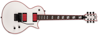 Gary Holt of Slayer and Exodus is a legend in the world of thrash metal. His LTD Signature Series GH-600 is based on the Eclipse body style, and was designed to handle the most aggressive, fast, and powerful playing you can muster. Its tone is driven by a pair of red-covered EMG active pickups: the EMG 89R in the neck, with a coil splitter controlled by a volume knob pull switch, and the in-your-face EMG 81 in the bridge. The GH-600 offers a set-thru neck design, with its three-piece mahogany neck offering smooth, unhampered access to the highest frets on its Macassar ebony fingerboard. This guitar's vibe is accentuated by red binding on the body, neck, and headstock, contrasting its Black or Snow White finish. The GH-600 includes a Floyd Rose tremolo and Grover tuners.