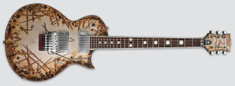 Фанаты Rammstein по всему миру, возрадуйтесь: подписная гитара Richard Z. Kruspe, RZK-II BURNT, теперь доступна в линейке E-II. До этого её можно было заказть только в ESP Custom Shop. Тем не менее, E-II RZK-II BURNT сделана мастерами на фабрике ESP в Японии. Данная модель выполнена в форм-факторе Eclipse и сразу же в глаза бросается её отделка - сильно состаренная, опалённая и с порезами на корпусе и голове грифа. Корпус сделан из ольхи, а благодаря сквозному грифу из клёна сустейн просто неимоверный. Мензура 25.5", что несколько больше, чем у обычного Eclipse. Накладка на гриф сделана из палисандра с 24 ладами extra-jumbo. Высококачественная фурнитура включает в себя колки Gotoh, стрэплоки Schaller и Floyd Rose Original. А благодаря датчикам EMG 81 под крышками под "затёртый" хром звучание гитары максимально агрессивное.