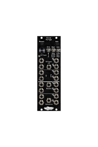 The Vice Virga is a very useful module for chaining CV or trigger sequencers, switching through outputs from an oscillator, rearranging modulation or effects chains, and so on. Come on, time to get creative!