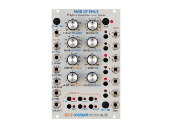 Poised as a multifunctional collection of six oscillators or modulation sources, Rossum's Mob of Emus offers an abundance of flexibility within a single module. While each of the six channels can effectively function with total independence from each other, Rossum certainly realized the value and creative potential of being able to synchronize timings and shift the values of each channel's parameters at once while maintaining their individual identities.