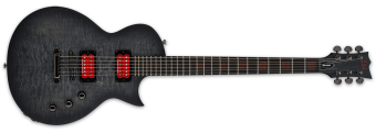 Ben Burnley is the founder of the eponymously-named rock/alt-metal band Breaking Benjamin, and his LTD Signature Series guitar, the BB-600 Baritone, is the driving force for this frontman's musical creations. The BB-600B is one of the most versatile signature models ever made by ESP. It includes two distinct pickup types: a pair of high-quality magnetic pickups (with a set comprised of Seymour Duncan '59 and JB), as well as a Graph Tech Ghost-Loaded Resomax NV bridge and tailpiece that offers an integrated piezo pickup. The BB-600B also includes two output jacks, allowing you to route the signal from the standard magnetic pickups to one amplifier and the piezo pickup to another for incredible flexibility onstage or in studios. More than just sonically flexible, the BB-600B is an incredible instrument in other ways as well. A single-cutaway Eclipse body style with set-thru construction, the BB-600B is a baritone guitar at 27" scale, allowing for downtuning without sacrificing ideal string tension. Its mahogany body is topped with quilted maple in an amazing See Thru Black Sunburst Satin finish. It offers a thin U-shaped three-piece maple neck for a comfortable playing feel. The aesthetic of this guitar is complemented with custom red pickup covers, red fingerboard inlays with the Breaking Benjamin symbol, and a red LTD logo.