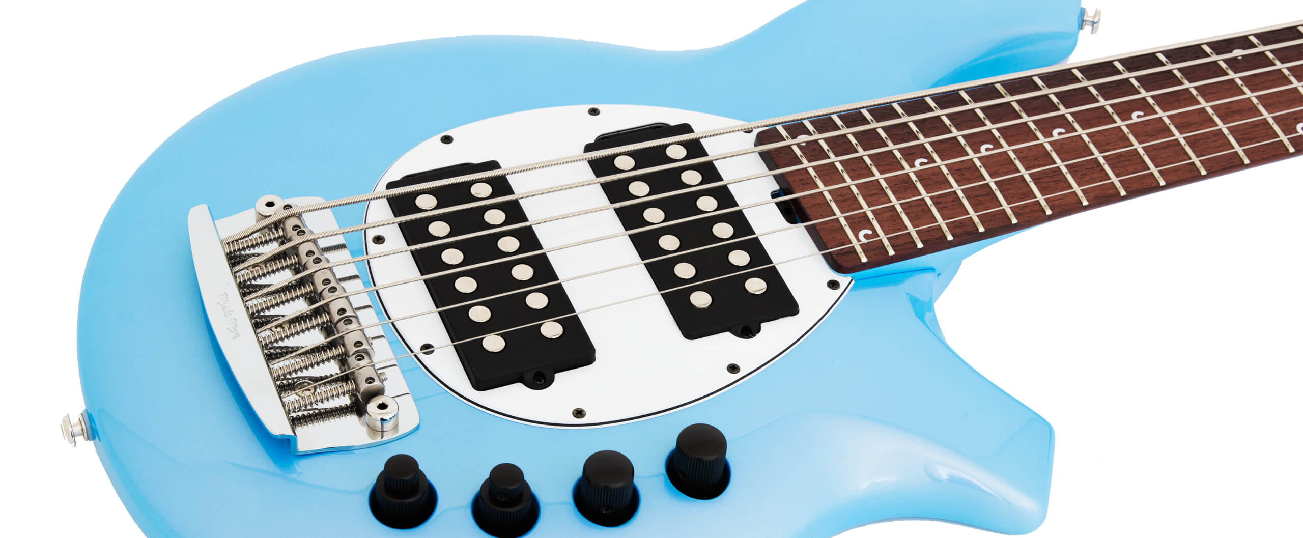 Bridge | Standard - Music Man® chrome plated, hardened steel bridge plate with stainless steel saddles (Stealth Black finish features matte black hardware) |