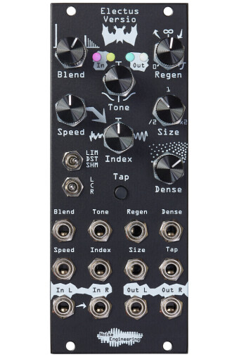 Electus Versio is a module that creates unexplored evolving spaces. It is something between a reverb and delay and both at the same time – it's Desmodus’ Versios more aggressive clocked counterpart.