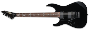 The LTD KH-602 is a Kirk Hammett Signature Series guitar that offers just about everything that its higher-end cousin, the ESP KH-2, does, at a price that more musicians can afford. Check it out: the KH-602 features neck-thru-body construction, with a comfortable alder body, a three-piece extra-thin U-shaped maple neck, pau ferro fingerboard with 24 extra-jumbo frets and Kirk's skull-and-bones inlays, and components that include a Floyd Rose bridge and a set of EMG Kirk Hammett Bone Breaker Signature pickups. It's a powerful guitar designed for professional recording and live performance, perfect for any serious player of intense music. Available in Black finish.