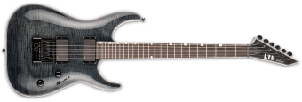 As part of the LTD Deluxe Series designed for professional musicians, the LTD MH-1000 EverTune gives you more than you bargained for. It offers set-thru construction, meaning the neck extends deeply into the guitar's body cavity, offering unparalleled access to the upper frets with a smooth heel joint. It has a mahogany body with a flamed maple top in a See Thru Black finish, highlighting the great look of the figured wood grain. It also features a three-piece thin U-shaped maple neck, and an ebony fingerboard with 24 extra-jumbo frets. High-class touches are included, like its multiple white binding and Grover tuners. But the MH-1000 EverTune takes things a step further with the inclusion of active EMG 85 (neck) and EMG 81 (bridge) pickup for tones that range from dark and menacing through screaming and aggressive. Finally, the EverTune constant tension bridge ensures that almost any conditions, your guitar will stay in perfect tune, and have incredibly accurate intonation at every point on the fingerboard. EVERTUNE BRIDGE SETUP