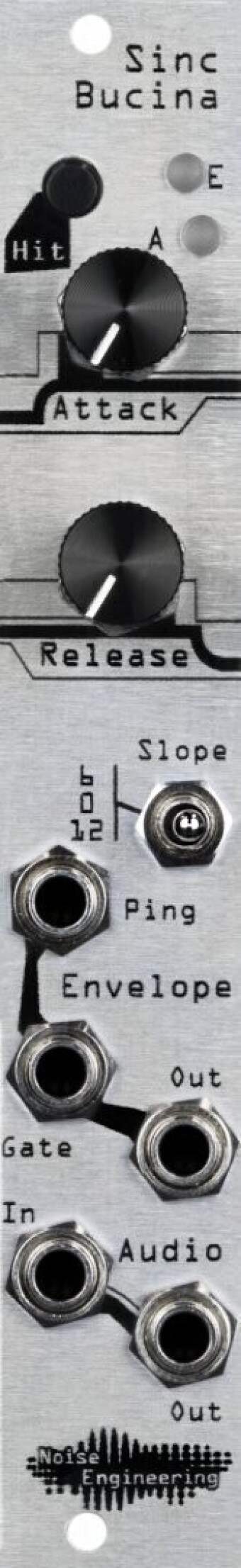 The Noise Engineering Sinc Bucina (Black) is. 4HP Resonant Low-Pass Gate Eurorack Module which combines Filter, Envelope and VCA. The controller-less 6-12dB Low-Pass Filter is directly addressed by the Envelope and can be switched to LPG. In VCA Mode, it can generate the popular Buchla Bongos. The Attack/Release Envelope has its own CV Output and can be used for Modulation outside the Sinc Bucina.