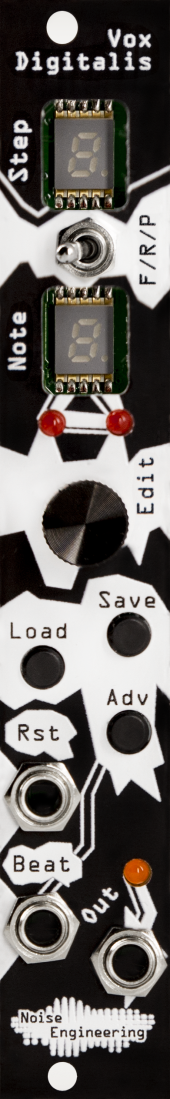 Small, easy-to-program sequencers are a bit of a rarity. Vox Digitalis is our answer to this issue. With intuitive displays and simple controls, VD is perfect for all your pitch CV needs. Set your sequence length, dial in each note, randomize, save and load 16 sequences -- VD does all the stuff the big sequencers do, just in 4hp.