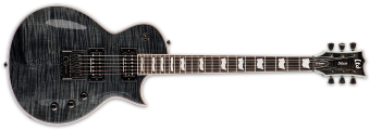 Guitars in the LTD EC-1000 Series are designed to offer the tone, feel, looks, and quality that working professional musicians need in an instrument, along with the pricing that typical musicians can still afford. The EC-1000 ET FM adds a remarkable new technology with the EverTune bridge system, which delivers constant tension that keeps your guitar in tune and with near perfect intonation up and down the neck under almost any condition. Now available with a great-looking flamed maple top, it offers set-thru construction with a mahogany body and maple cap, 3 pc. mahogany neck, and 24-fret ebony fingerboard, multi-ply body/neck/headstock binding, and the excellent tone from a Seymour Duncan JB/Jazz passive pickups. Available in See Thru Black finish. EVERTUNE BRIDGE SETUP