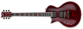 Guitars in the LTD EC-1000 Series are designed to offer the tone, feel, looks, and quality that working professional musicians need in an instrument, along with the pricing that typical musicians can still afford. The EC-1000QM offers the sumptuous look of a quilted maple top along with the classy LTD Deluxe features that set it apart from other guitars in its range, such as abalone inlays and purfling, full body/neck/headstock binding, and premier components like LTD locking tuners, a Tonepros locking TOM bridge and tailpiece, and the aggressive punch of active EMG 81/60 pickups. It also offers set-neck construction with a mahogany body, 3 pc. mahogany neck, and 24-fret pau ferro fingerboard. Available in See Thru Black Cherry finish.
