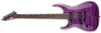Guitars in the LTD 1000 Series are designed to offer the tone, feel, looks and quality that working professional musicians need in an instrument. The MH-1000NT includes premier-class components like LTD locking tuners, a Tonepros locking TOM bridge with string-thru-body, and Seymour Duncan pickups that are direct-mounted to the guitar’s body. Its set-thru three-piece maple neck has a macassar ebony fingerboard with 24XJ frets, and its mahogany body is topped with figured quilted maple with See Thru Purple finish.